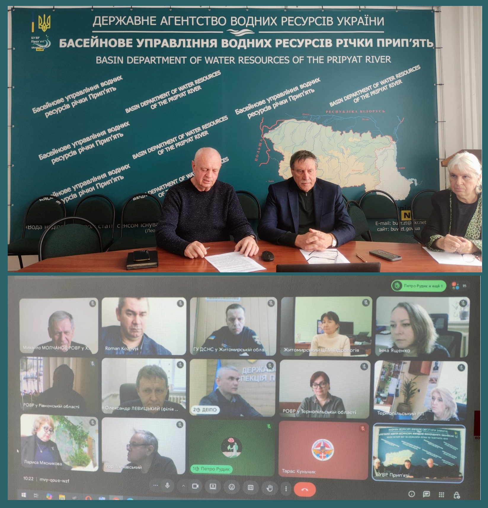 Засідання відбулось за участі представників Басейнового управління водних ресурсів річки Прип’ять, Регіональних офісів водних ресурсів у Рівненській, Хмельницькій, Волинській, Тернопільській областях, Басейнового управління водних ресурсів річок Західного Бугу та Сяну, Управління екології та природних ресурсів Тернопільської ОДА, Державної екологічної інспекції Поліського округу, Житомирського обласного центру гідрометеорології, ВП «Хмельницька АЕС» ДП «НАЕК «Енергоатом», Головних управлінь ДСНС України у Житомирській та Тернопільській областях, Управлінь Державного агентства з розвитку меліорації, рибного господарства та продовольчих програм у Волинській, Тернопільській та Житомирській областях та Іванківського міжрайонного управління водного господарства.