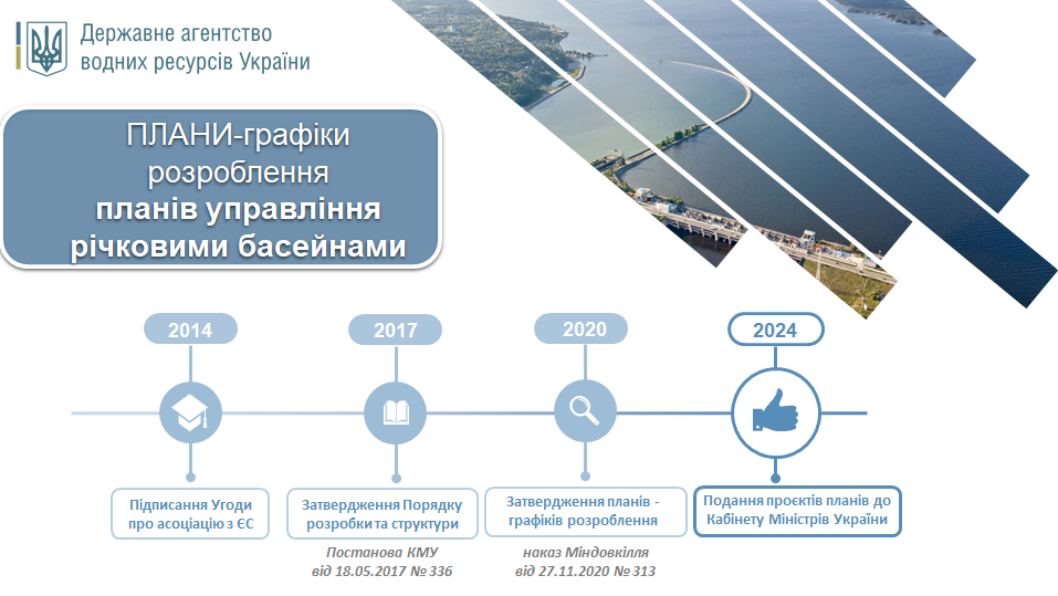 План- графік процесу розроблення проєктів Плану управління річковим басейном Дніпра затверджений Наказом Міністерства захисту довкілля та природних ресурсів України №313 від 27.11.2020 року.